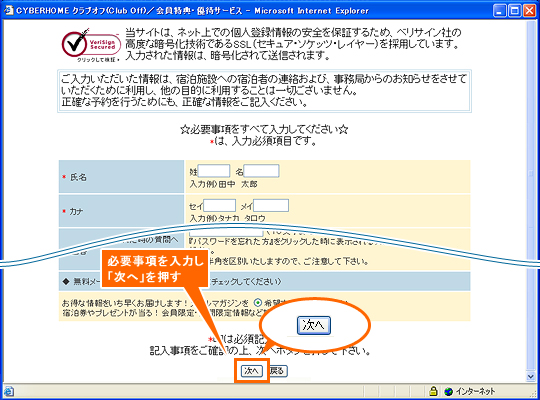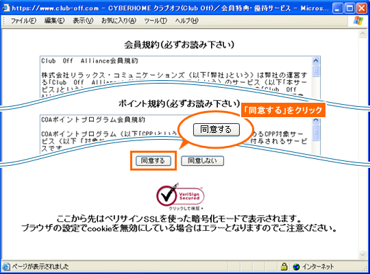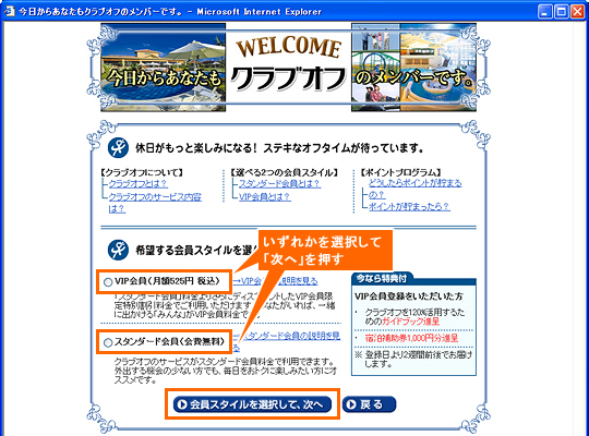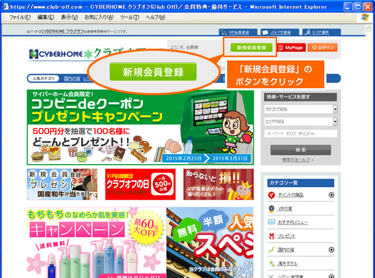 以下の手順で、CYBERHOMEクラブオフへの会員登録を行い、会員専用のプレミアムサービスを